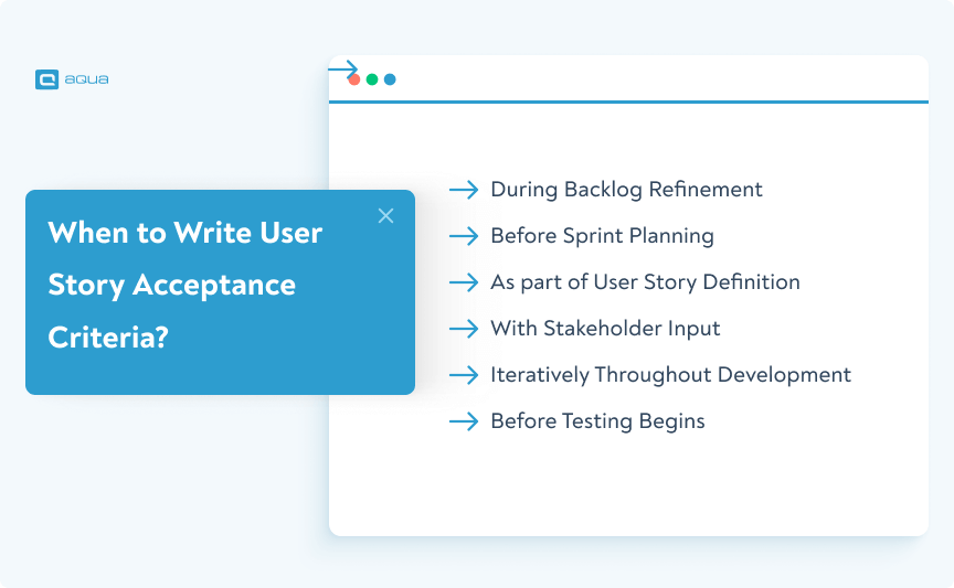 - During Backlog Refinement: Collaborate with the product owner and team to define acceptance criteria before sprint planning begins. This early involvement ensures that the team understands the expected outcomes and scope of each user story.