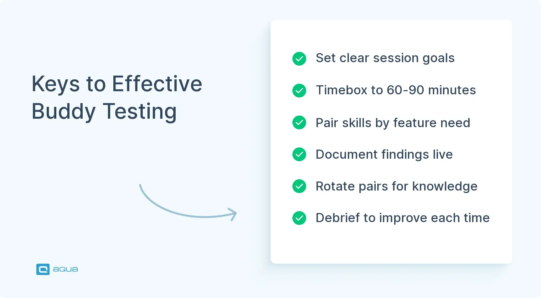 Start by applying buddy testing selectively to high-risk or high-complexity features rather than mandating it across every sprint task. Define concrete objectives before each session so both participants know what they are validating and what done looks like. Protect the scheduled time from interruptions and keep sessions timeboxed to 60 to 90 minutes to maintain focus and engagement. Match pairings based on complementary skill sets relevant to the feature being tested rather than scheduling convenience. Document findings in real time using a shared tool so institutional knowledge from the session is captured rather than lost. Rotate pairings regularly so technical and testing knowledge spreads across the team rather than concentrating in specific relationships. Debrief briefly after each session to identify what worked and adjust the approach for the next one. Finally, track outcomes such as defect escape rates for buddy-tested features to evaluate whether the investment is producing measurable quality improvements, which gives you the data to justify and refine the practice over time.