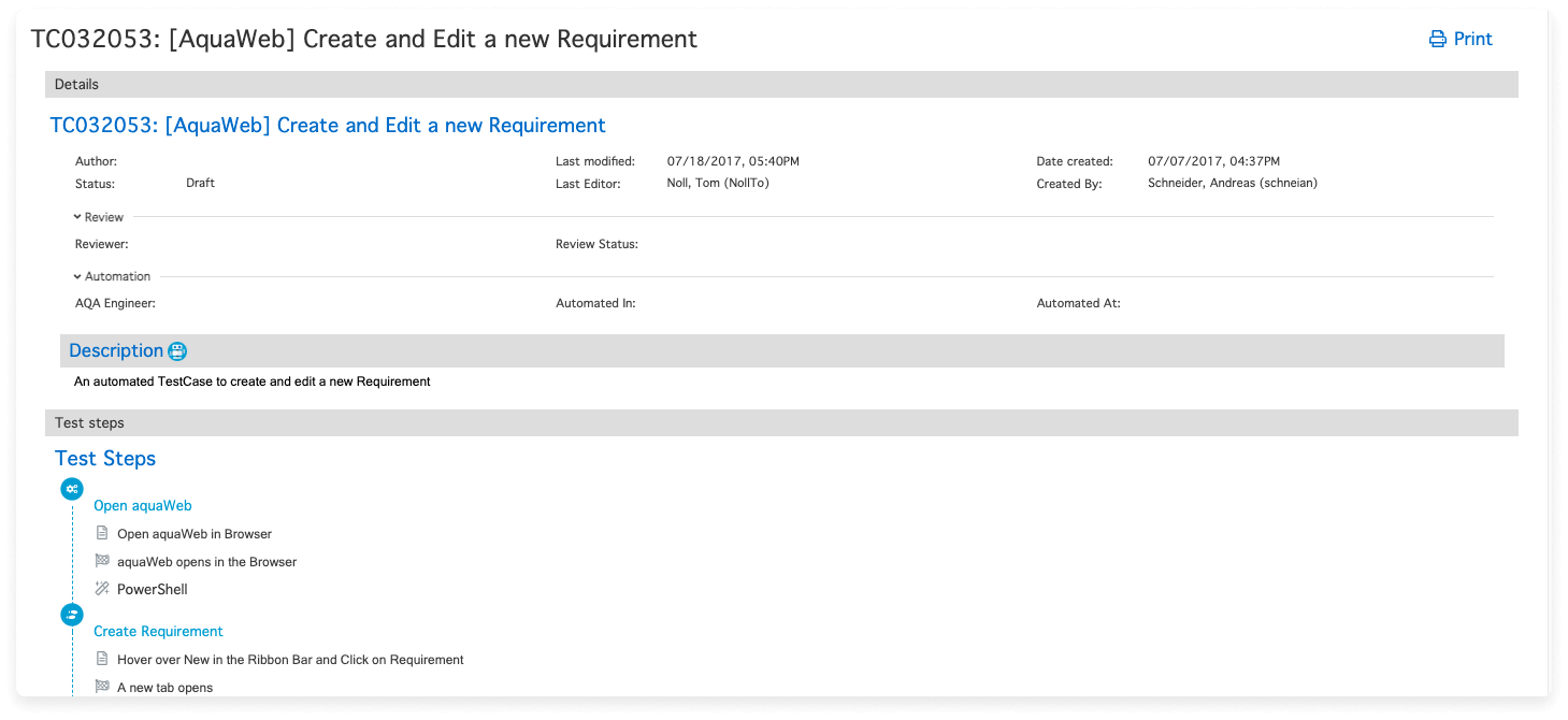 Hier ist der gleiche Testfall, den unser Tester manuell in aqua erstellt hat: