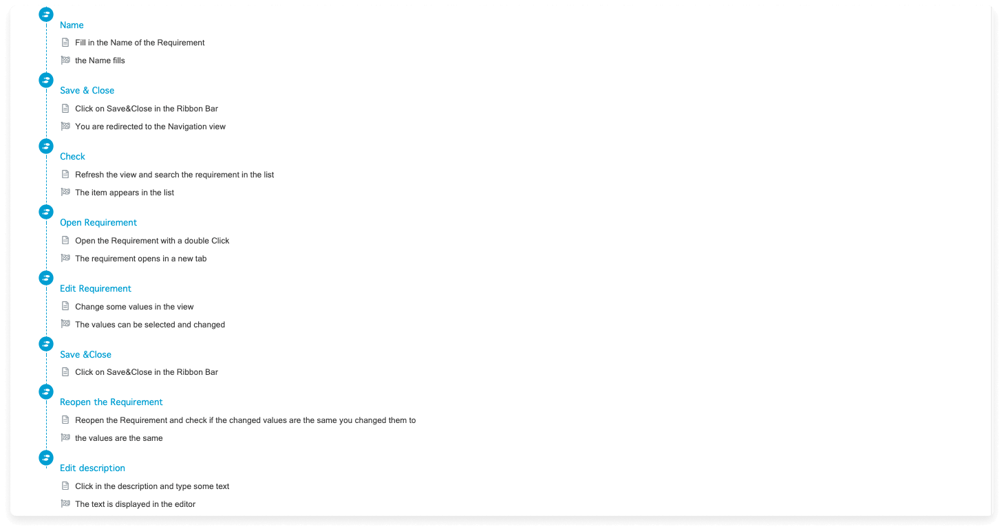Testfall für das Erstellen und Bearbeiten einer neuen Anforderung