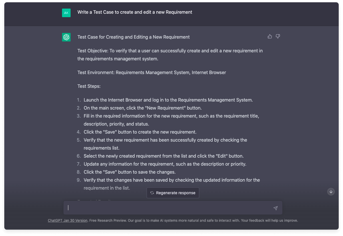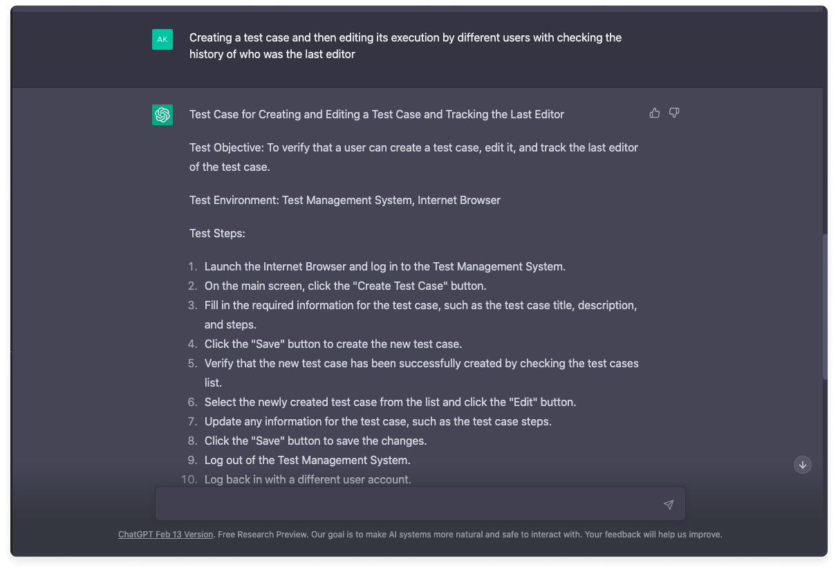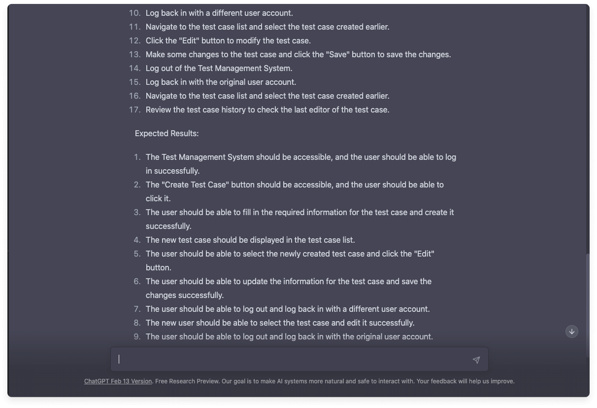 - Automatisiertes Testen: KI kann viele der manuellen Aufgaben automatisieren, die mit dem Testen verbunden sind, beispielsweise die Ausführung von Testfällen, Regressionstests und die Fehlersuche. Auf diese Weise können sich die Tester auf komplexere und kreativere Aufgaben konzentrieren. Die Verwendung von ChatGPT für die Testautomatisierung spiegelt das Potenzial nicht wider: QA-orientierte GPT-Lösungen werden viel besser sein.