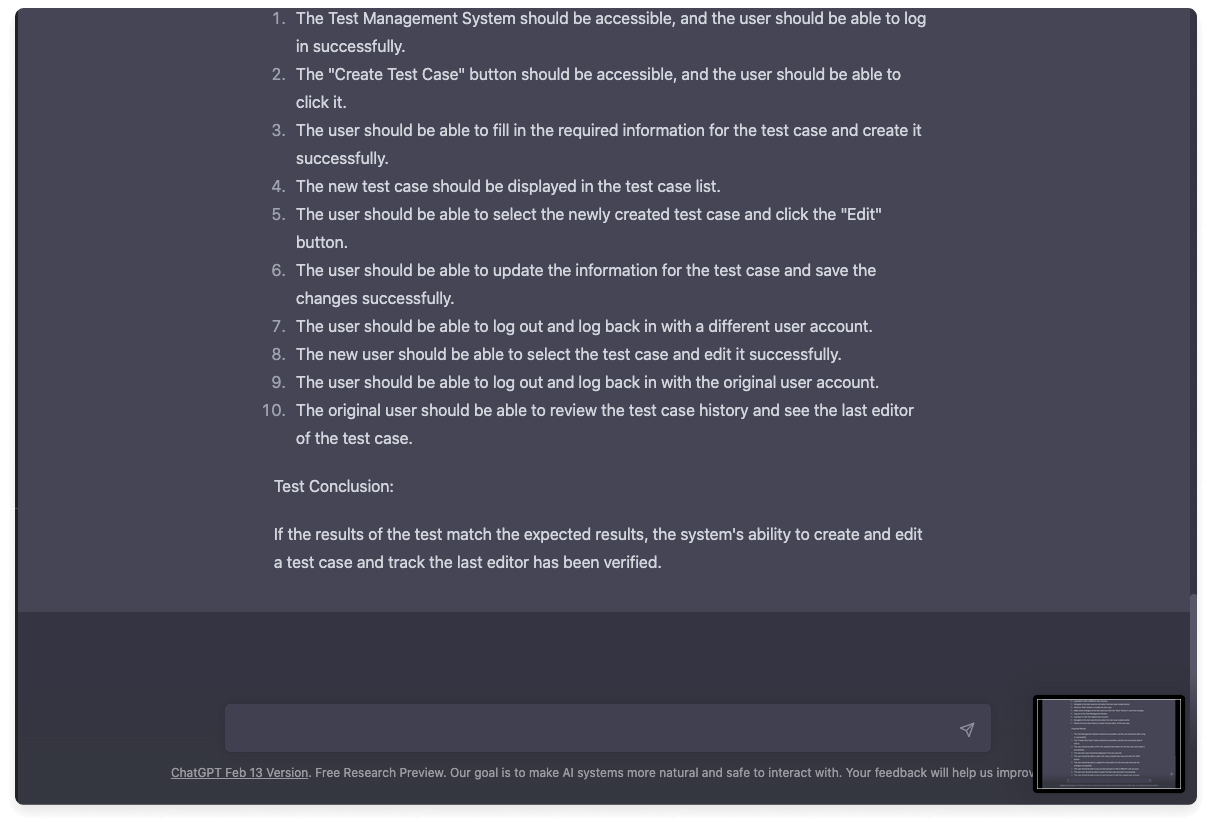 „ChatGPT hat die Aufgabe perfekt ausgeführt, wobei berücksichtigt wurde, dass die Eingabedaten auf eine kurze Anfrage beschränkt waren, die in ein ChatGPT-Fenster gesendet wurde. Aufgrund des fehlenden Kontexts ist dieser Testfall jedoch zu allgemein: Es werden nicht die individuellen Anforderungen eines Unternehmens abgedeckt.“