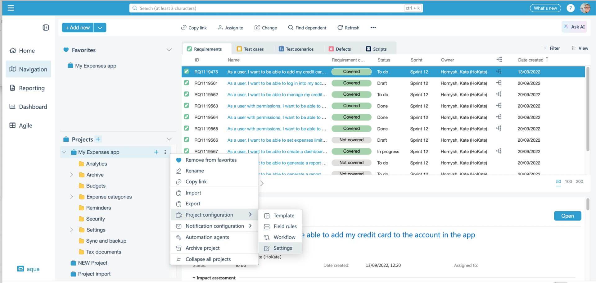 You can now link Confluence pages directly to aqua items by inserting a page URL, connecting specifications, documentation, and test artifacts without switching tools. Confluence Data Center is also now fully supported, covering large-scale, self-managed deployments alongside cloud.